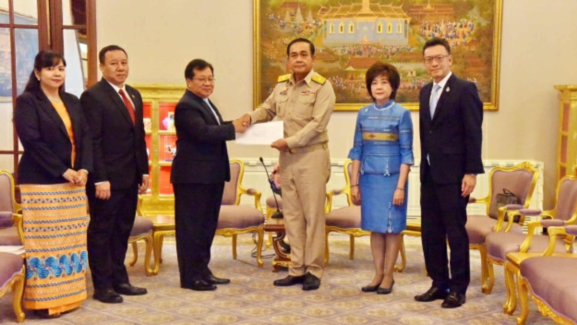พลเอก ประยุทธ์ จันทร์โอชา นายกรัฐมนตรี มอบสารแสดงความเสียใจและเงินช่วยเหลือแก่ อู-มโย-มยินตาน เอกอัครราชทูตสาธารณรัฐแห่งสหภาพเมียนมาร์ประจำประเทศไทย เพื่อช่วยเหลือเหตุอุทกภัยในหลายพื้นที่ของสาธารณรัฐแห่งสหภาพเมียนมาร์